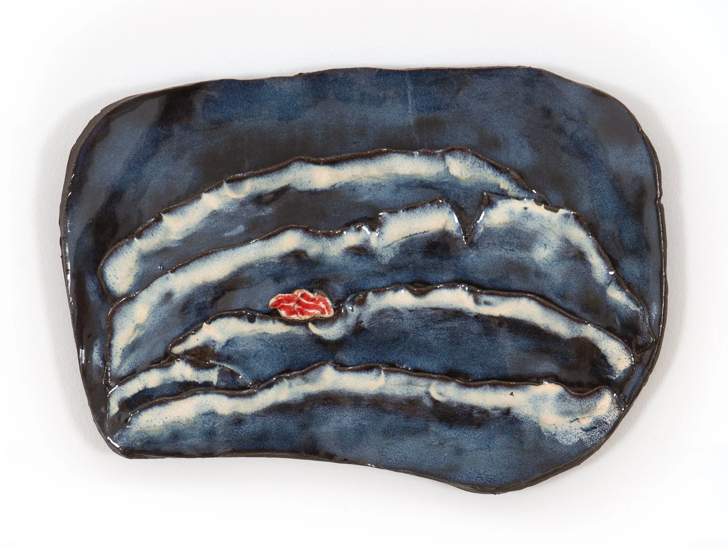 Keiko Narahashi, Glaze painting (waves with signal), 2025, Glazed stoneware, 7 3/4 x 10 1/2 x 3/4 in, 19.7 x 26.7 x 1.9 cm